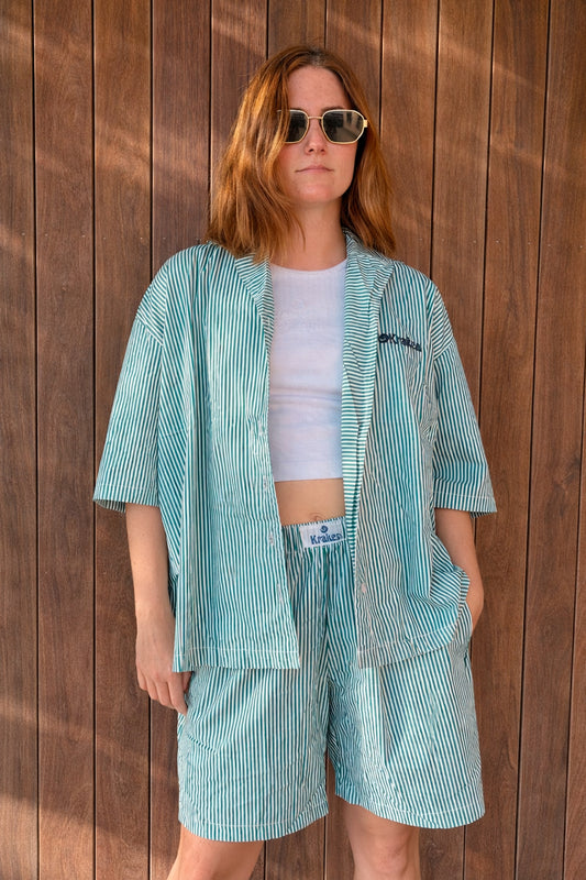 Camisa manga corta a rayas verde unisex