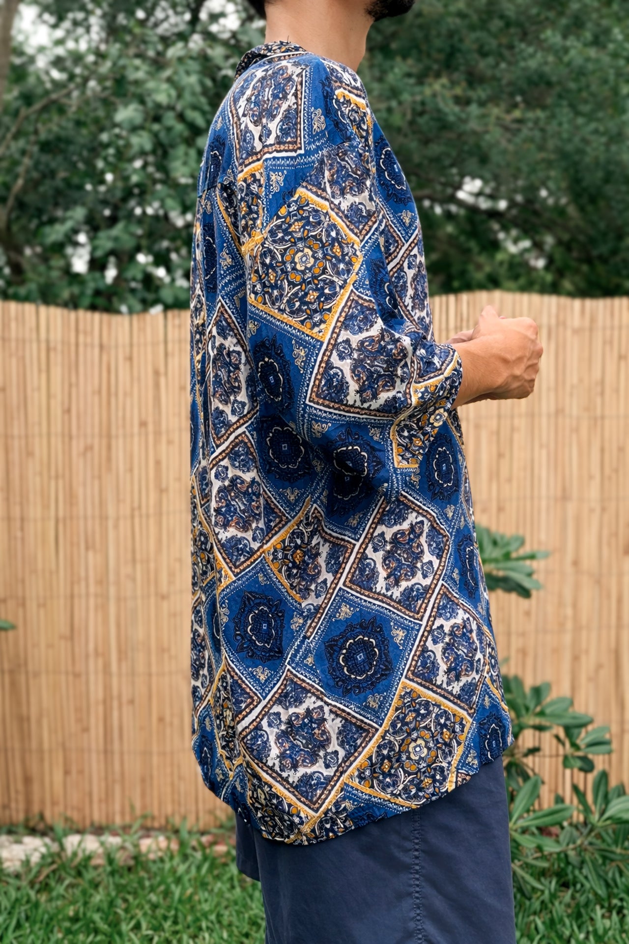 Camisa corte oversize unisex, estampa con mosaico geométrico.