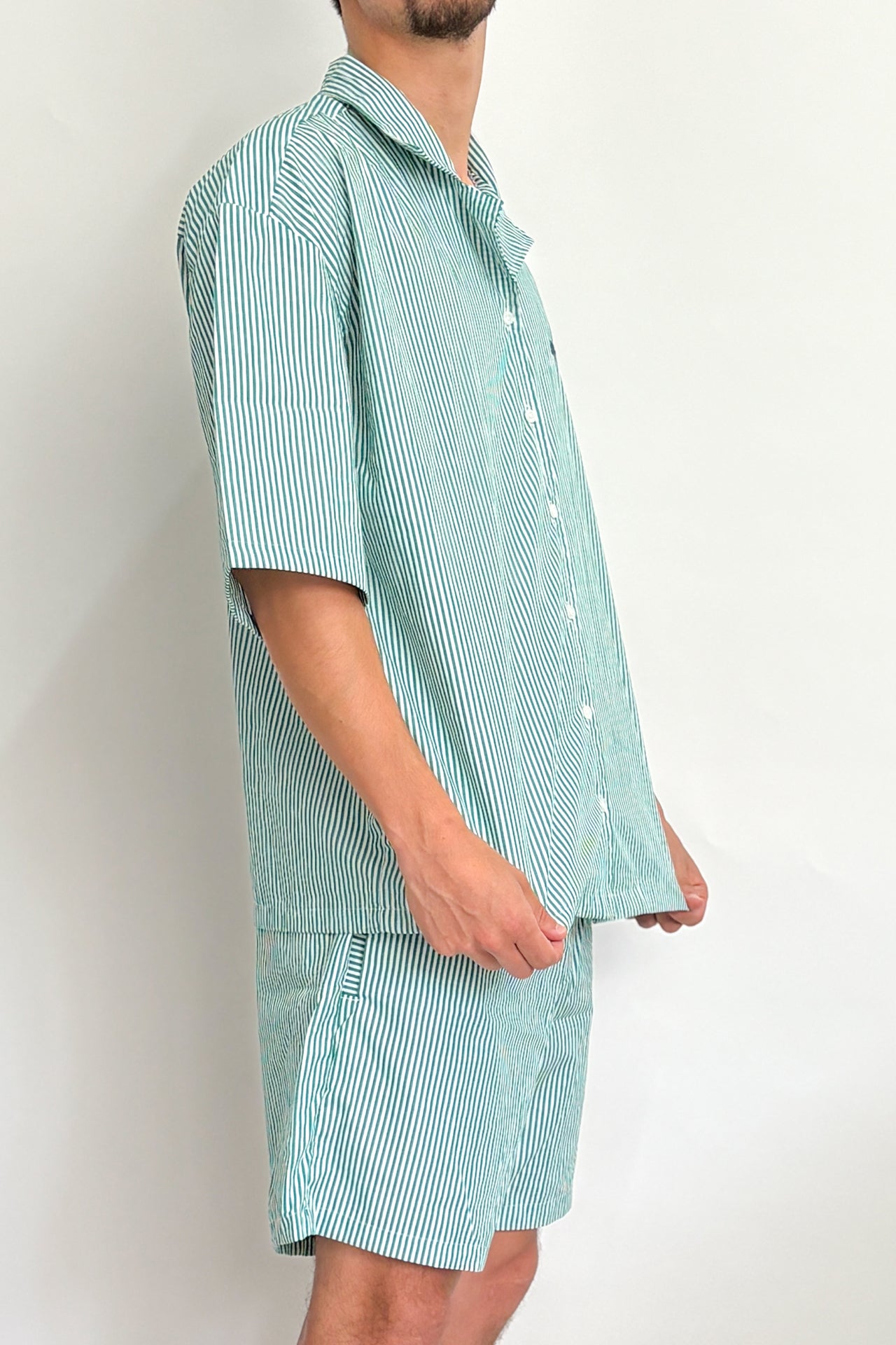 Camisa corte oversize unisex, a rayas verde y blanco